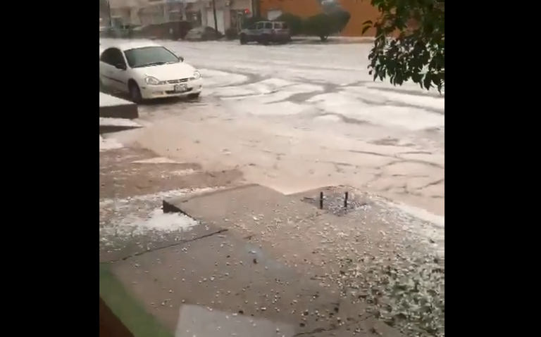 En el video compartido por esta página se aprecia una calle donde corre una cantidad importante de agua y se ve como van cayendo los granizos sobre la calle, por lo anterior se recomienda a la población extremar precauciones.